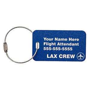 Do you need a smart looking, durable flight crew luggage tag? Our laser engraved textured crew luggage tags are up to the task. Available in a variety of colors, these bag tags can be personalized on one side only with your home-base airport code and 3 lines of additional text. The back side of the tag is the same color as the text.