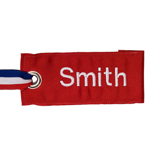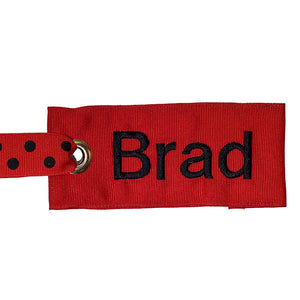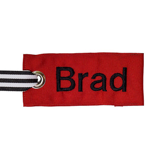 Each custom tag can be personalized with your name or initials.