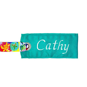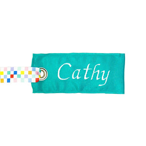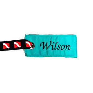 Keep your luggage identifiable and stylish with our Teal Luggage Tag! Made with durable teal grosgrain ribbon and can be accented with various ribbon handle options including our exclusive scuba flag ribbon. This bag tag is perfect for traveling in style. No more boring luggage at baggage claim -- pick your suitcase out of the crowd!