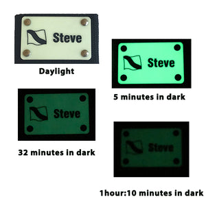 Night diver? Our glow in the dark Scuba BCD Name Tag helps identify you and your gear day or night. The custom engraved name plate is made from a specially engineered glow plastic made to exceed the photo-luminescent standards set by many municipalities and organizations for their exit, emergency and way-finding signage.