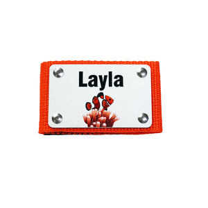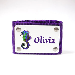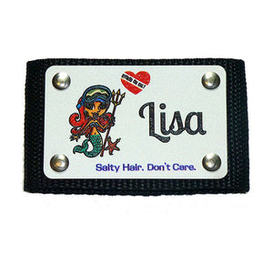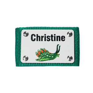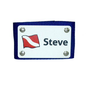 Looking for a full color name ID tag for your Scuba BCD? How about the custom full color version of our very popular BC name tag? It is made from the same polypropylene webbing as our standard BC tag but instead of the embroidered name, there is a plastic nameplate that is printed with a state of the art UV-LED printer . The nameplate is riveted to the webbing with four stainless steel rivets.